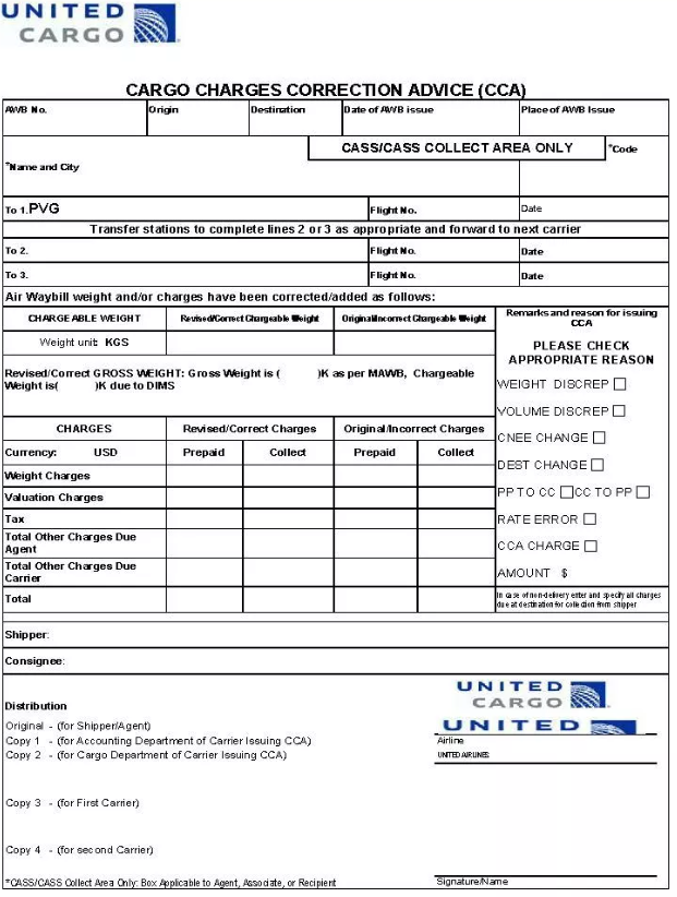 CARGO CHARGES CORRECTION ADVICE (CCA):