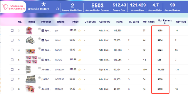 我用Unicorn Smasher Pro在亞馬遜上查了一下:排行前列的賣家一個月銷售額也就幾百美元,你管這叫火?有些媒體真的是為了博眼球,在根本不了解具體情況下就瞎報道。目的是什么?咱也不知道,咱也不敢問。有一些供應(yīng)商或者服務(wù)商想要做殺豬盤割韭菜,割的就是剛進(jìn)場不懂的小白賣家。不然幾年前的冷飯,為啥還要翻出來炒?而且對于跨境電商的賣家而言,冥幣除了不火之外,利潤也并不高。產(chǎn)品成本+頭程運(yùn)費(fèi)+FBA配送費(fèi)+倉儲費(fèi)+傭金+廣告成本+退換貨。