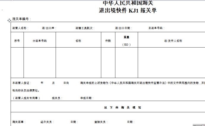 快件報關是指以快件公司名義向海關遞交快件報價單(KJ1,KJ2,KJ3類報關單等),以快件形式進行國際空運貨物的通關方式。這種優點報關就是手續簡單,快捷方便,費用便宜。這里講講什么是KJ1,KJ2,KJ3類報關單?  KJ1、KJ2、KJ3是對三種快件報關單的簡稱。