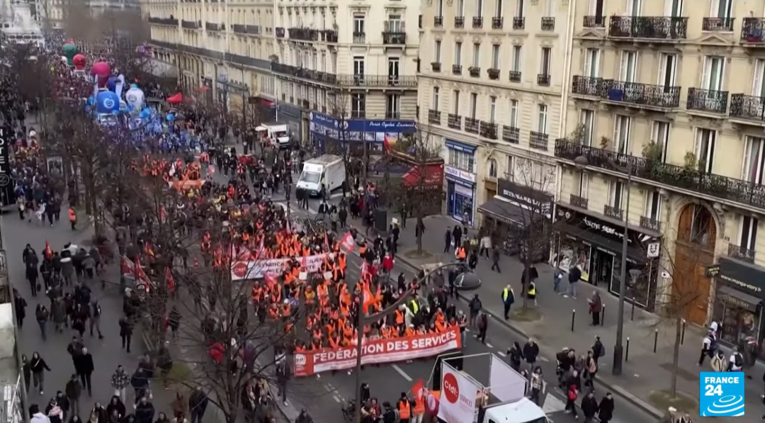 2023年1月19日,法國舉行了前所未有的全國罷工游行,法國內政部稱有112萬抗議者,法國總工會稱有200多萬抗議者;